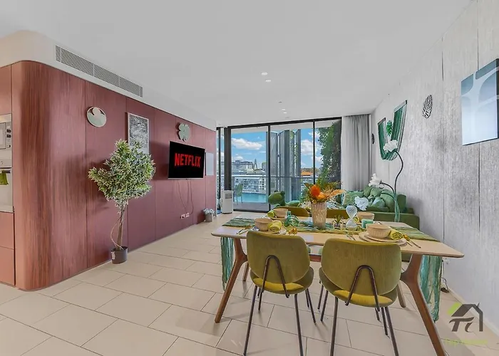 Hier können Sie in einer kompletten Küche Mahlzeiten Ihrer Wahl zubereiten. Der Flughafen Sydney ist 5 km entfernt, während der Busbahnhof Barangaroo Reserve in unmittelbarer Nähe vom Luxury 1 Sized 1-Bed Apartment Overlooking Valentine Harbor liegt.